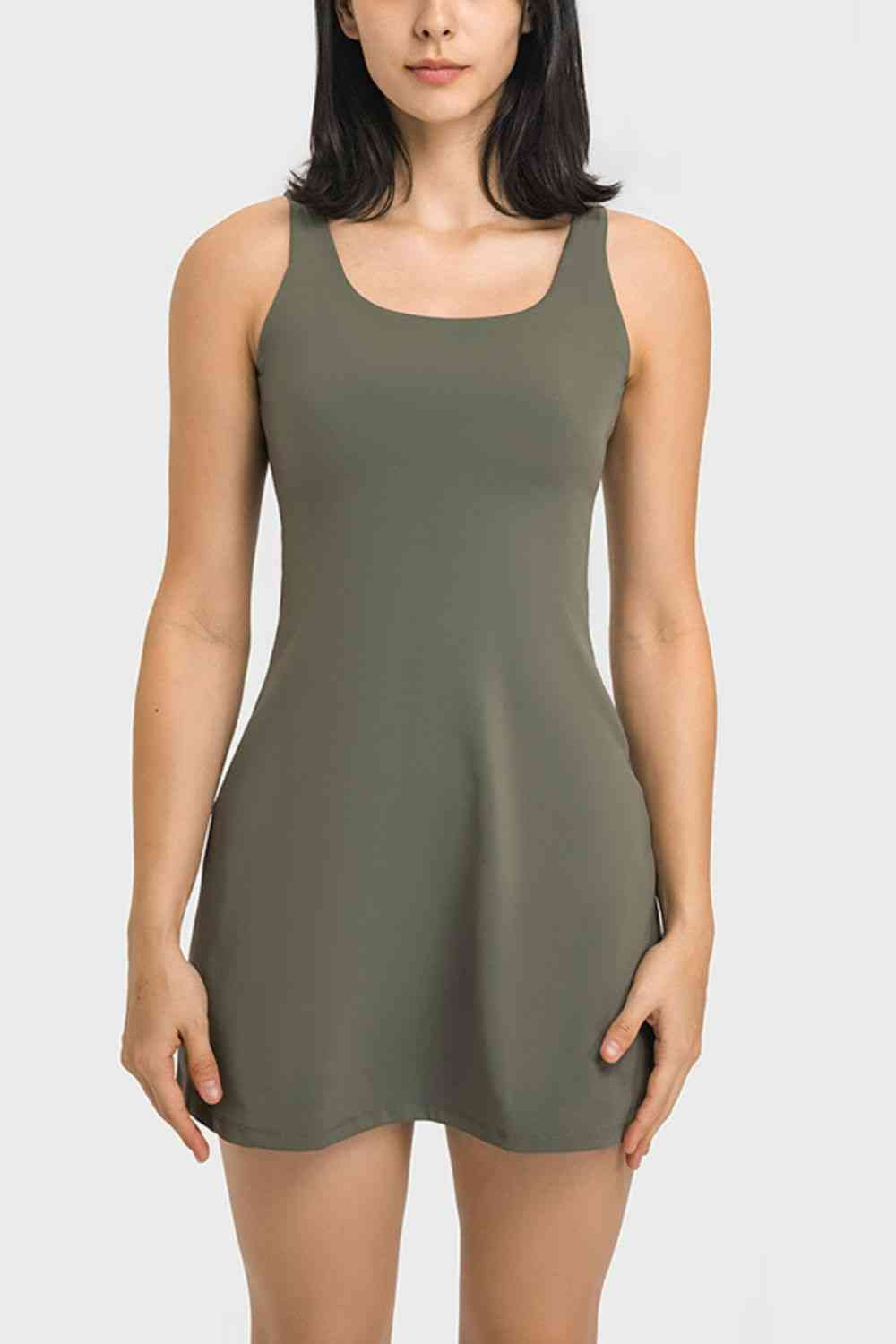 Square Neck Active Tank Dress with Built-In Shorts